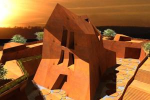 造型亮点:雕刻的弧形墙、丰富的红赭石外立面